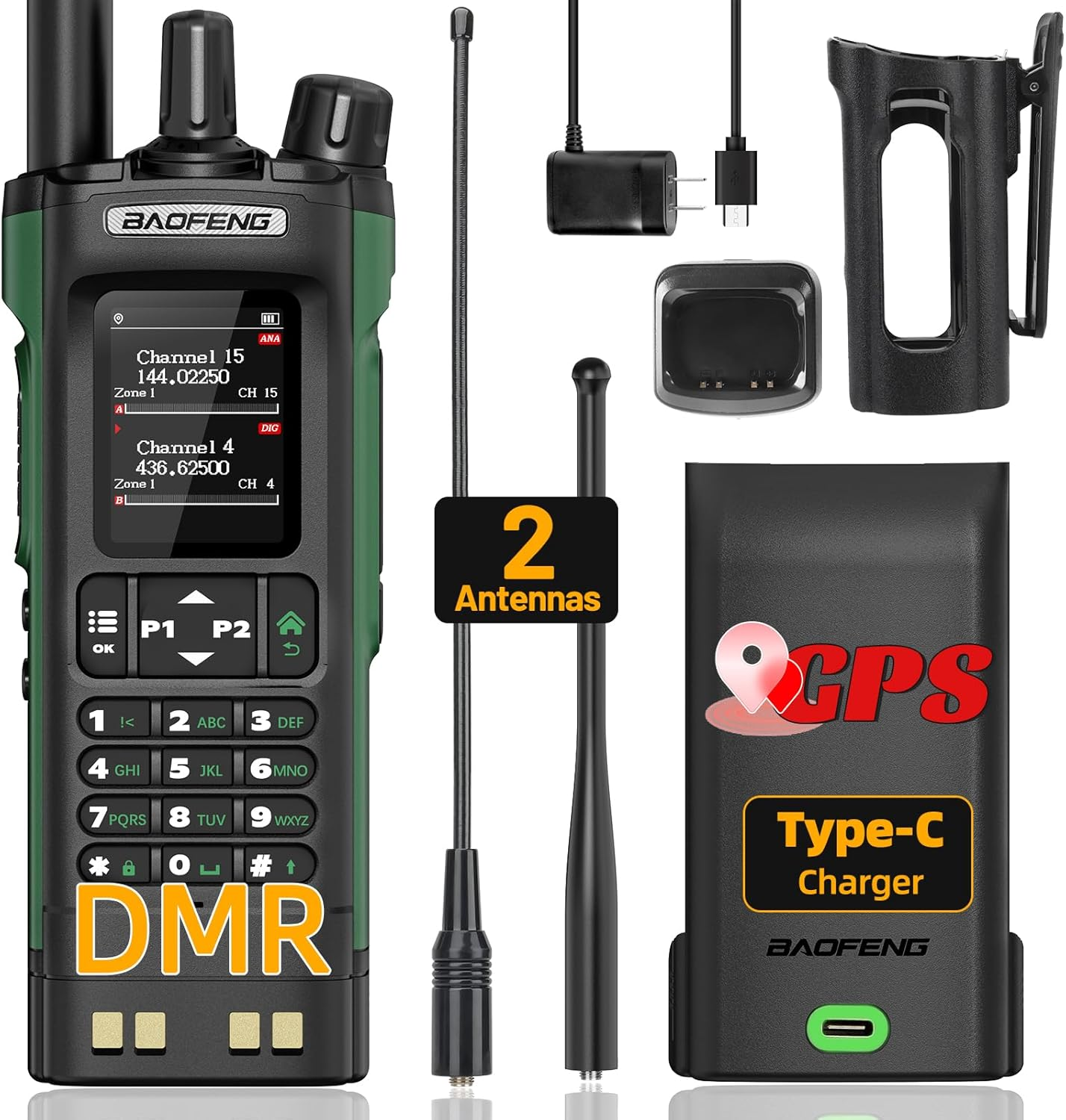 DM32 Ham Radio BAOFENG DMR Radio Handheld Rechargeable Walkie Talkies Long Range DM32UV 5RM Two Way Radio NOAA Weather Radio with GPS, Copy Frequency 2500mAh Battery (Delivered in the United States)