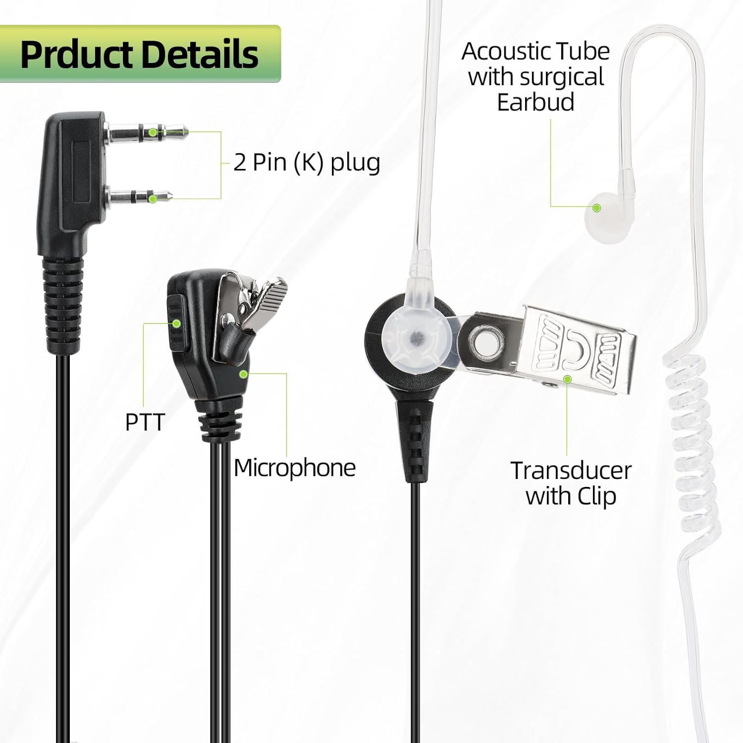 2PCS BAOFENG Walkie Talkies Earpiece with Mic Radio Earpiece for Walkie-Talkie 2 Pin Headset K5 Plus 5RM BF-888S UV-5R BF-F8HP PRO AR-152 UV-5R MINI UV-21R DM-32 UV-32 Two Way Radio