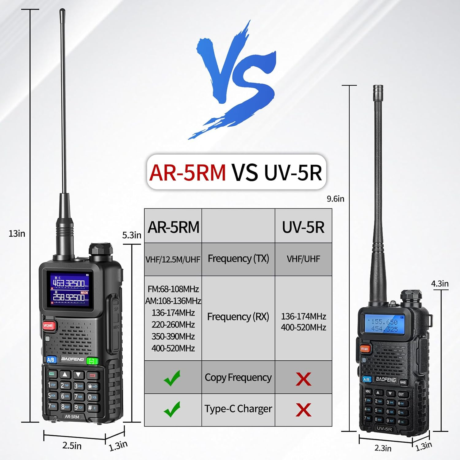 AR-5RM Ham Radio Baofeng Radio 10W Long Range HandheldTwo Way Radio NOAA Weather Receiver Rechargeable Walkie Talkies Longe Range DTMF (Delivered in the United States)