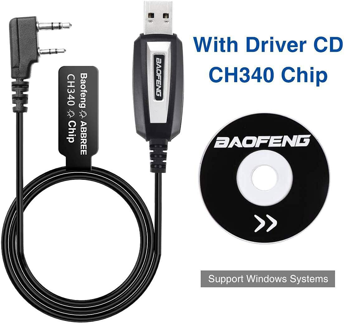 - Baofeng programming cable use CH340 chip,work with Windows Operation System.